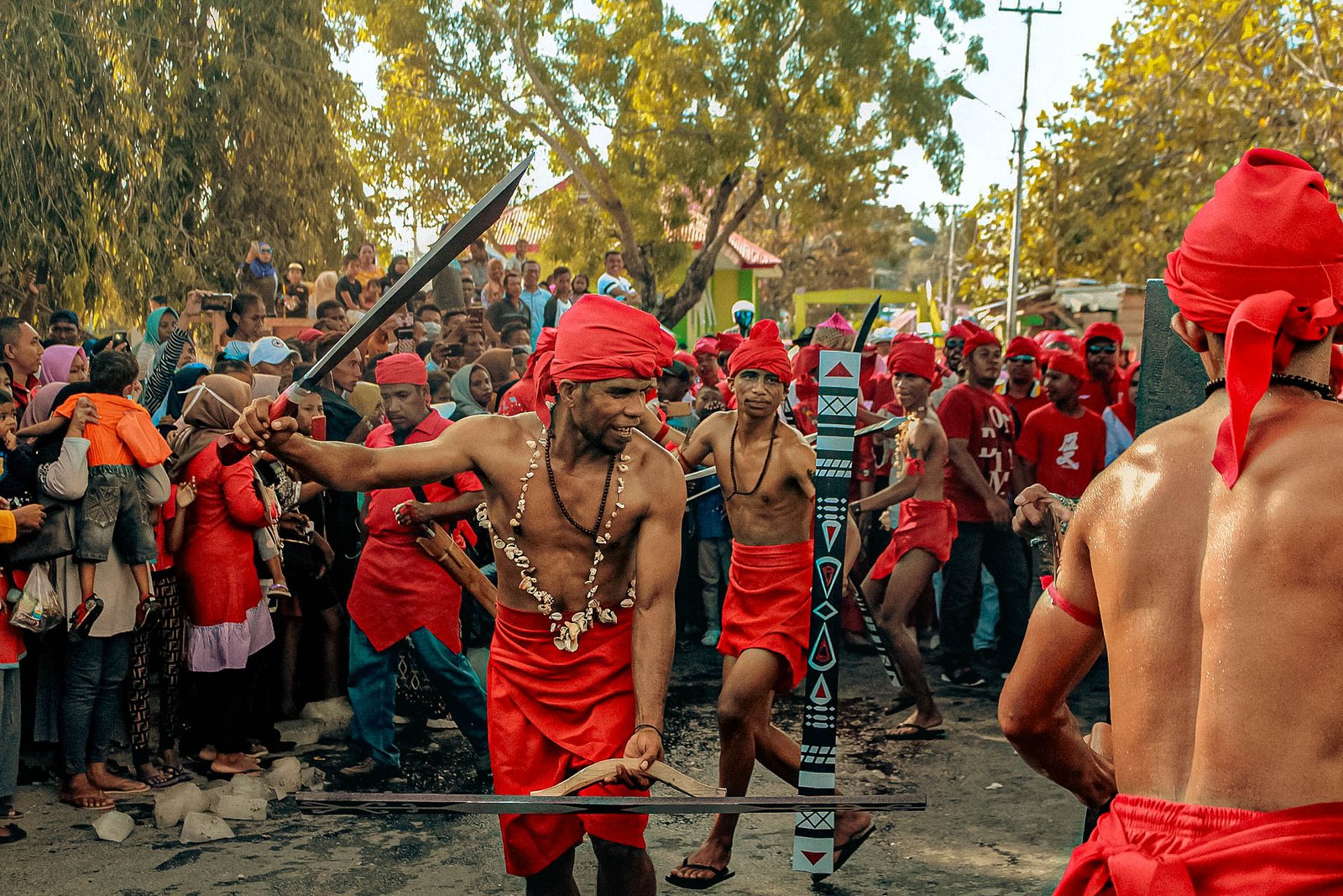 Maluku’s cultural heritage is actively preserved through traditional ceremonies. These prominently feature the Cakalele war dance, a male performance using the traditional parang-sword and salawaku-shield. These martial displays are balanced by communal dances performed by women in traditional attire, both of which serve to honor and maintain ancestral traditions.
